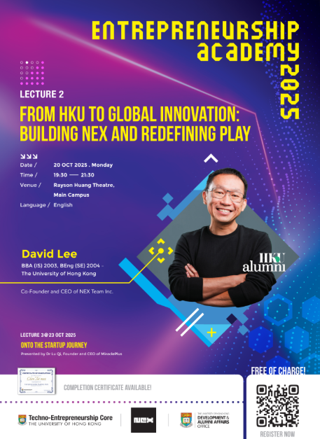 David will talk about how his time at HKU shaped his entrepreneurial mindset, the early inspirations behind Nex, the challenges and breakthroughs of scaling a startup, and what it takes to build a successful consumer product from scratch. He’ll also share Nex’s exciting plans for growth — including expanding its presence in Hong Kong — and why now is the perfect time to join the journey.